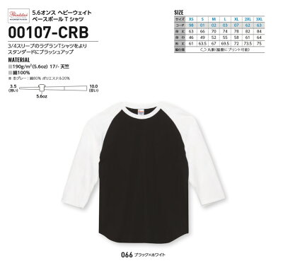 無地 7分袖 tシャツ メンズ レディース Printstar プリントスター 5.6オンス ヘビーウエイト ラグラン ベースボール Tシャツ ユニフォーム 00107 【00107-CRB】 送料無料 通販A15