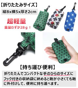【持ち運びに便利】 薄手で超軽量ながら頑丈で折り畳んで、付いたケースに収納すれば手のひらに納まります。