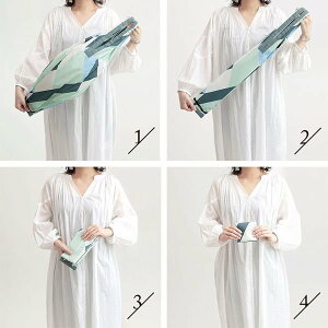 ●プリーツが収まりにくい場合、両端を引っ張った状態で形を整えてから、たたんでください。