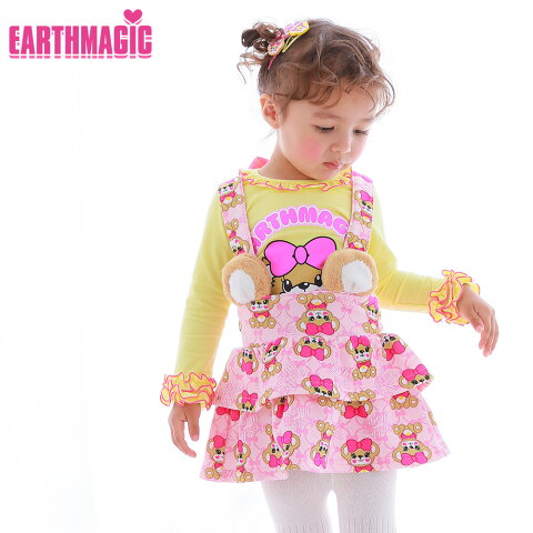 アースマジック EARTHMAGIC 正規品 ストロベリー ビッグマフィー セーラーカラー ニット ワンピース 2021秋冬 子供服 キッズ 女の子 女児 長袖 薄手 ボーダー 可愛い お出かけ 通園 通学 幼稚園児 小学生 ピンク パステルカラー 100 110 120 130 140