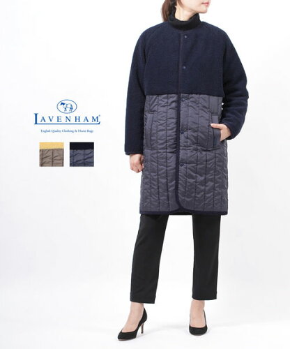 ラベンハム(LAVENHAM)シェルパ×キルティング 切替え ノーカラー ロングコート 切替えコート SHERPA PALGRAVE・SLJ2140-3872102(レディース)(■■)