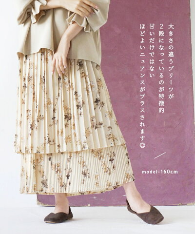 ※【コンビニ受取対応商品】【はこぽす対応商品】身長約160cm ベージュ:コーデをチェック身長約160cm ブラック:コーデをチェック身長約160cm ベージュ:コーデをチェックゆれるレイヤードを楽しむ!プリーツスカート幅の違うプリーツが2段になったレイヤードスカート。