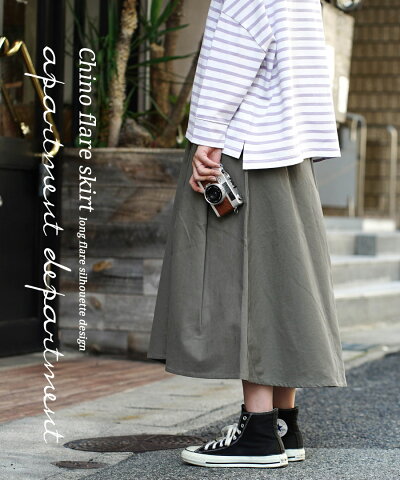 身長約160cm グレイッシュカーキ使用:コーデをチェックブラック:160cmベージュマスタード:160cm『明日もはきたい』チノ素材のスカートが再登場!しわになりにくく、丈夫で適度な光沢をもつチノ素材のスカート。