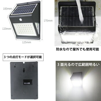 【在庫限り】3面 センサーライト ブラック 3面 センサーライト 太陽光で電源供給できるから便利【在庫処分】