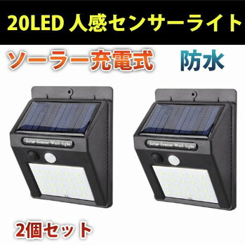 ソーラーライト人感 センサーライト 20LED 壁掛け式 ソーラー充電式 屋外照明 玄関 庭 壁 ガーデン 防水 120°広角 2個セット