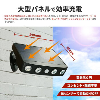 人感+光センサーで自動制御 電源をONにしておけば暗くなると人感センサーが自動に作動。