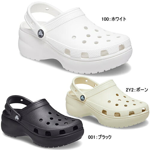 クロックス crocs レディース クラシック プラットフォーム クロッグ 軽量 厚底 サンダル クロッグ Classic Platform Clog W 206750 ホワイト ボーン ブラック
