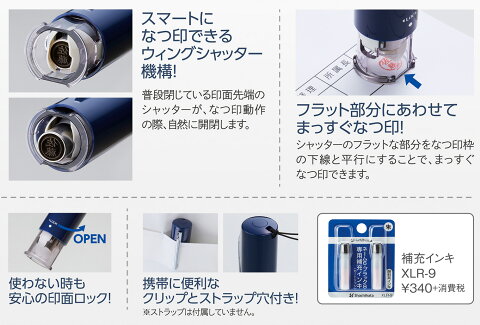 ▼キャップレス6 補充インキは ▼印面のサイズ9.5mm 認印なら「ネーム9」