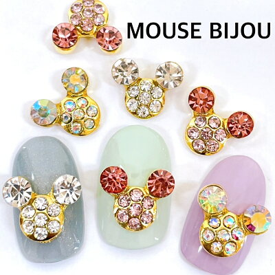ネイルパーツ 【2個セット】 ゴールド ラインストーン マウス ビジュー クリスタルストーン チャーム ハンドメイト ピアス イヤリング ジェルネイル アクリルネイル ミッキービジューSABOE