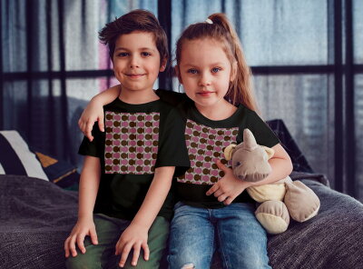 tシャツ キッズ 半袖 黒地 ブラック デザイン 90 100 110 120 130 140 150 Tシャツ ティーシャツ T shirt 008930 ピンク 模様 茶色 ブラウン