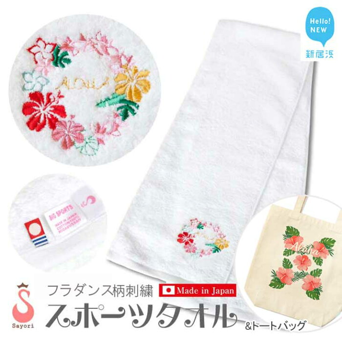 【ふるさと納税】 フラダンス柄スポーツタオルとトートバッグセット 日本製 オリジナル刺繍&プリント