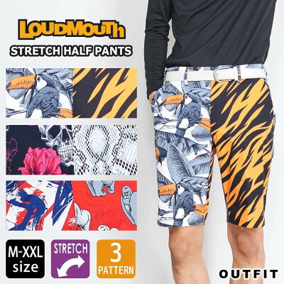LOUDMOUTH ラウドマウス ハーフパンツ ショートパンツ メンズ ゴルフパンツ ゴルフウェア メンズウエア ひざ上 半ズボン スポーツ おしゃれ ストレッチ UVカット 大きいサイズ M L LL XL XXL 春 夏 秋 ボトムス 個性的 柄 敬老の日 プレゼント ギフト outfit